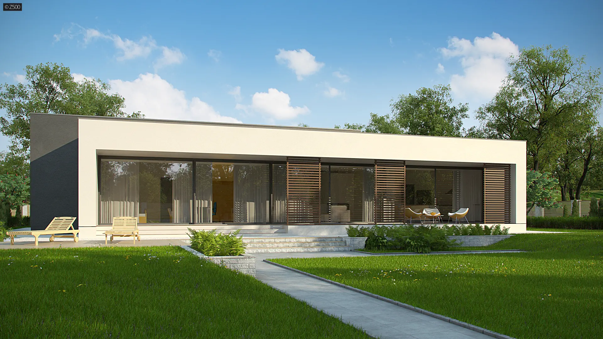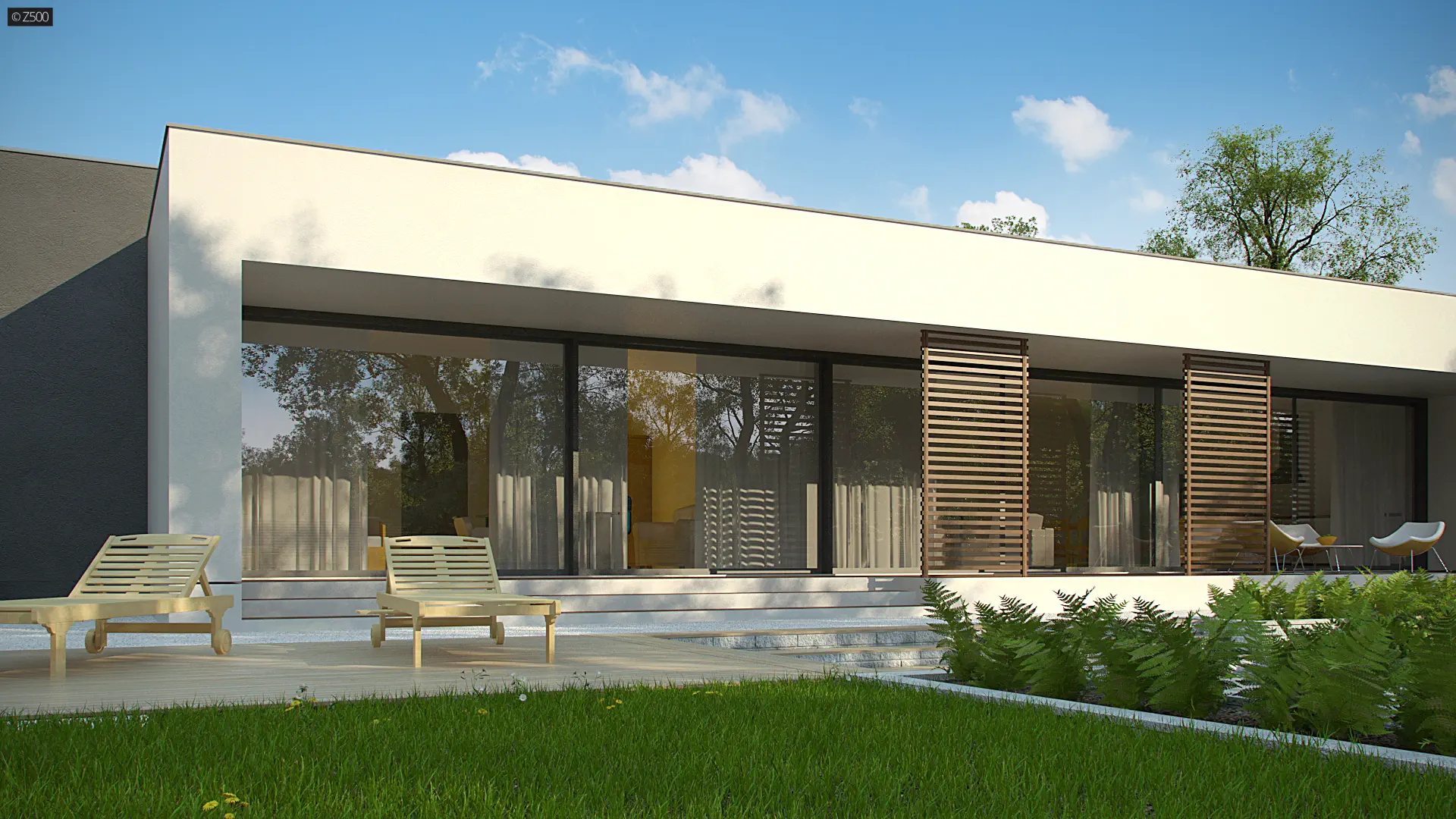 Dom Zx72 dedykowany jest dla osób wymagających, które pragną zamieszkać w nowoczesnym i przestronnym domu parterowym z ogrodem.