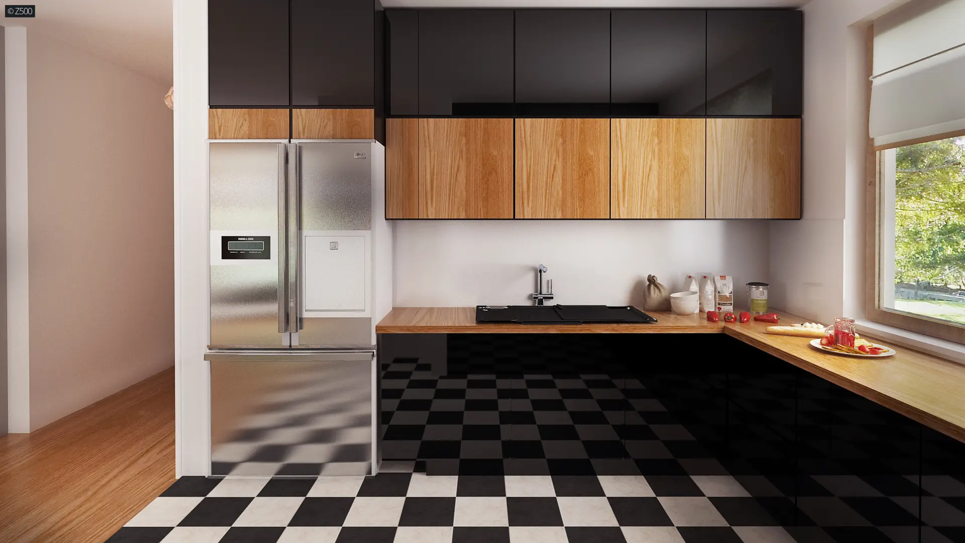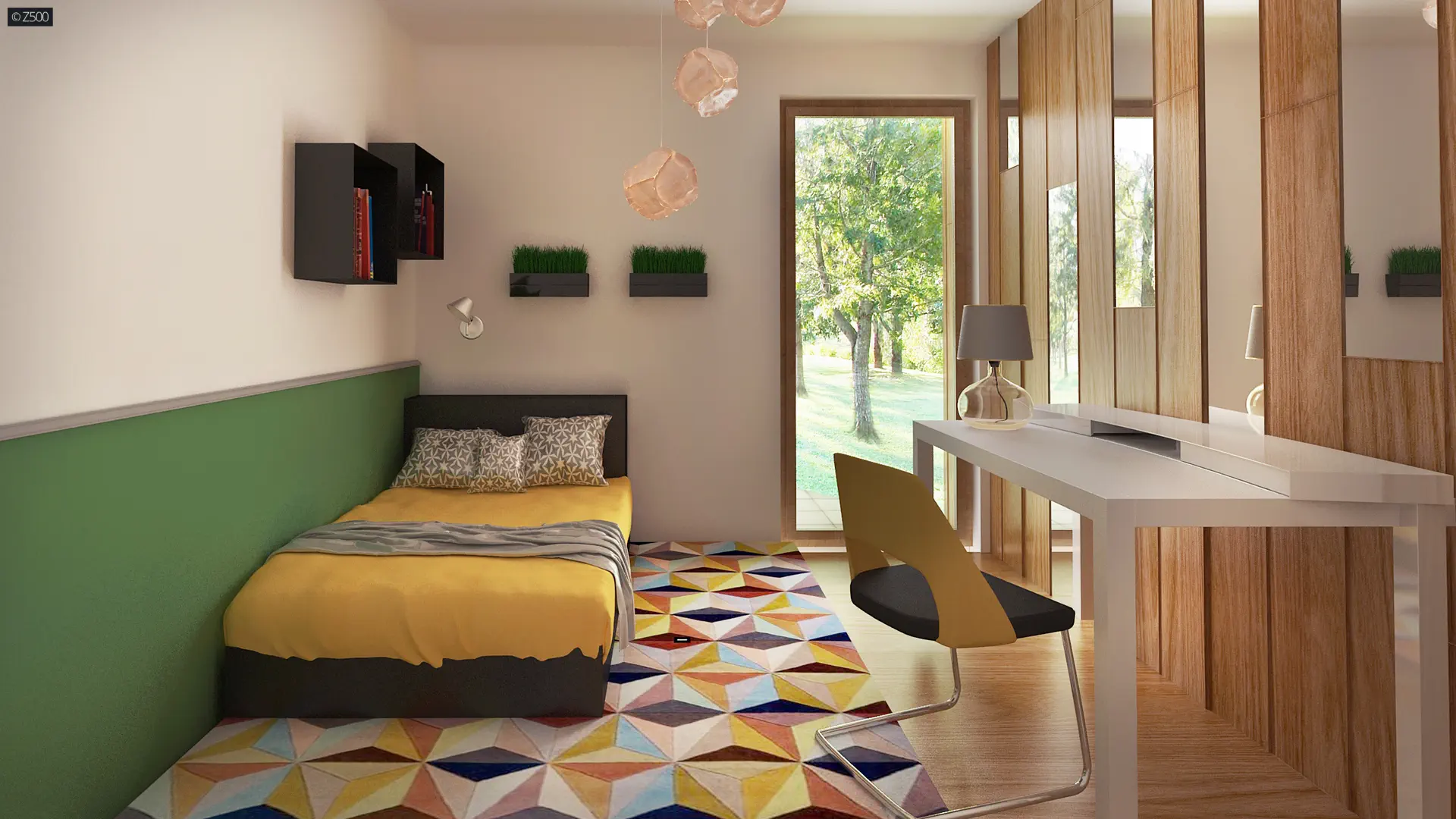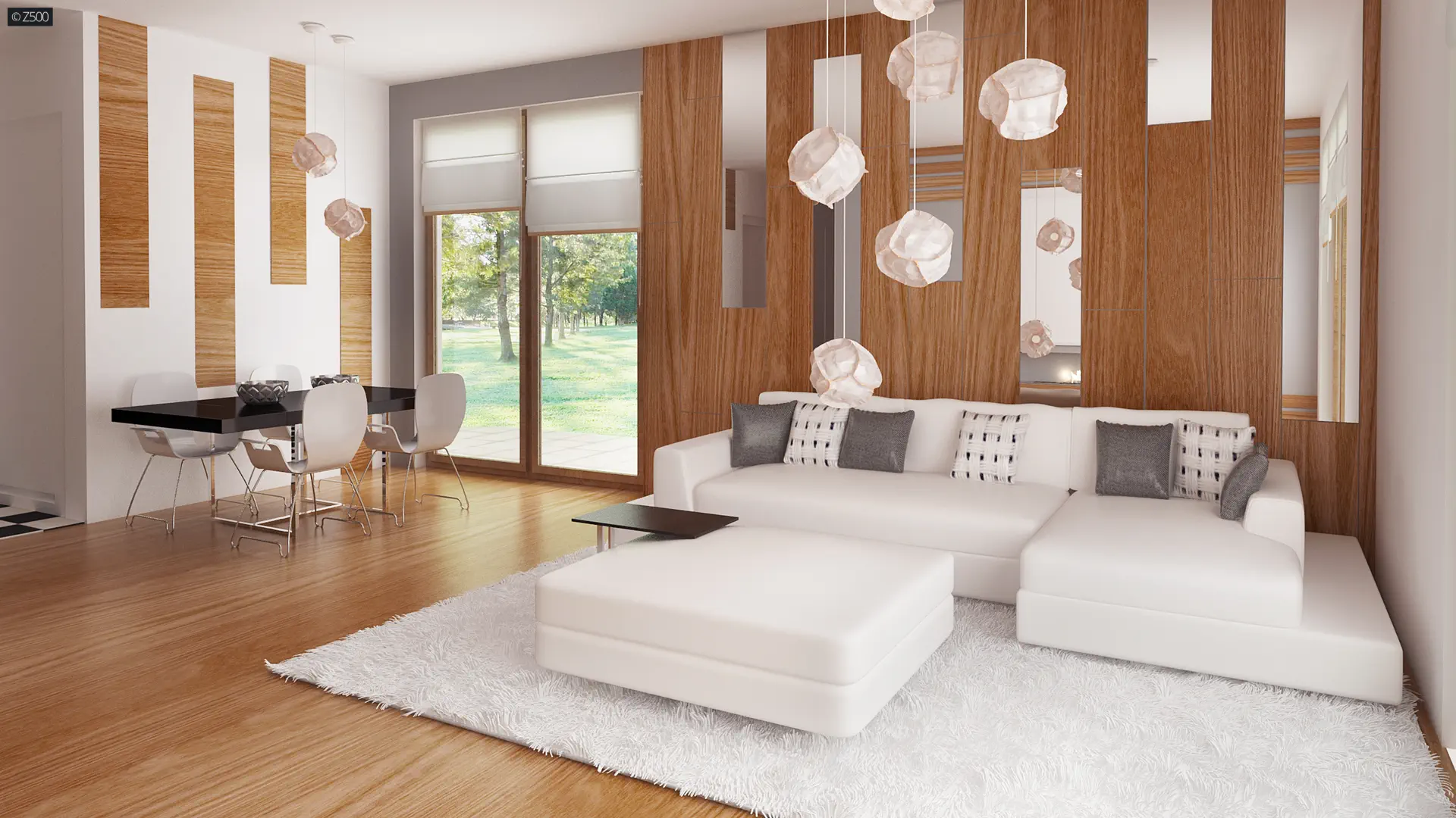 Zx76 D to parterowy budynek z płaskim dachem bez garażu. Posiada duże przeszklenia i zadaszenia nad częścią wejściową i ogrodową.