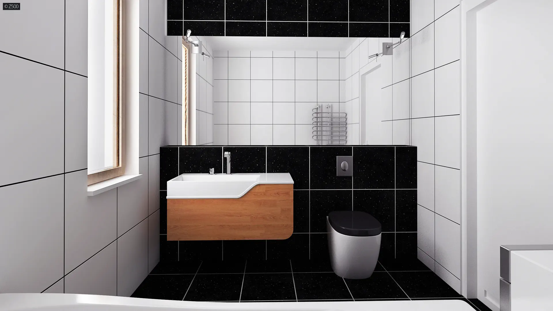 Na wykończenie elewacji składają się pionowe ażurowe elementy, ciepła okładzina drewniana w części ogrodowej, oraz tynk w kolorach białym i grafitowym od frontu.
