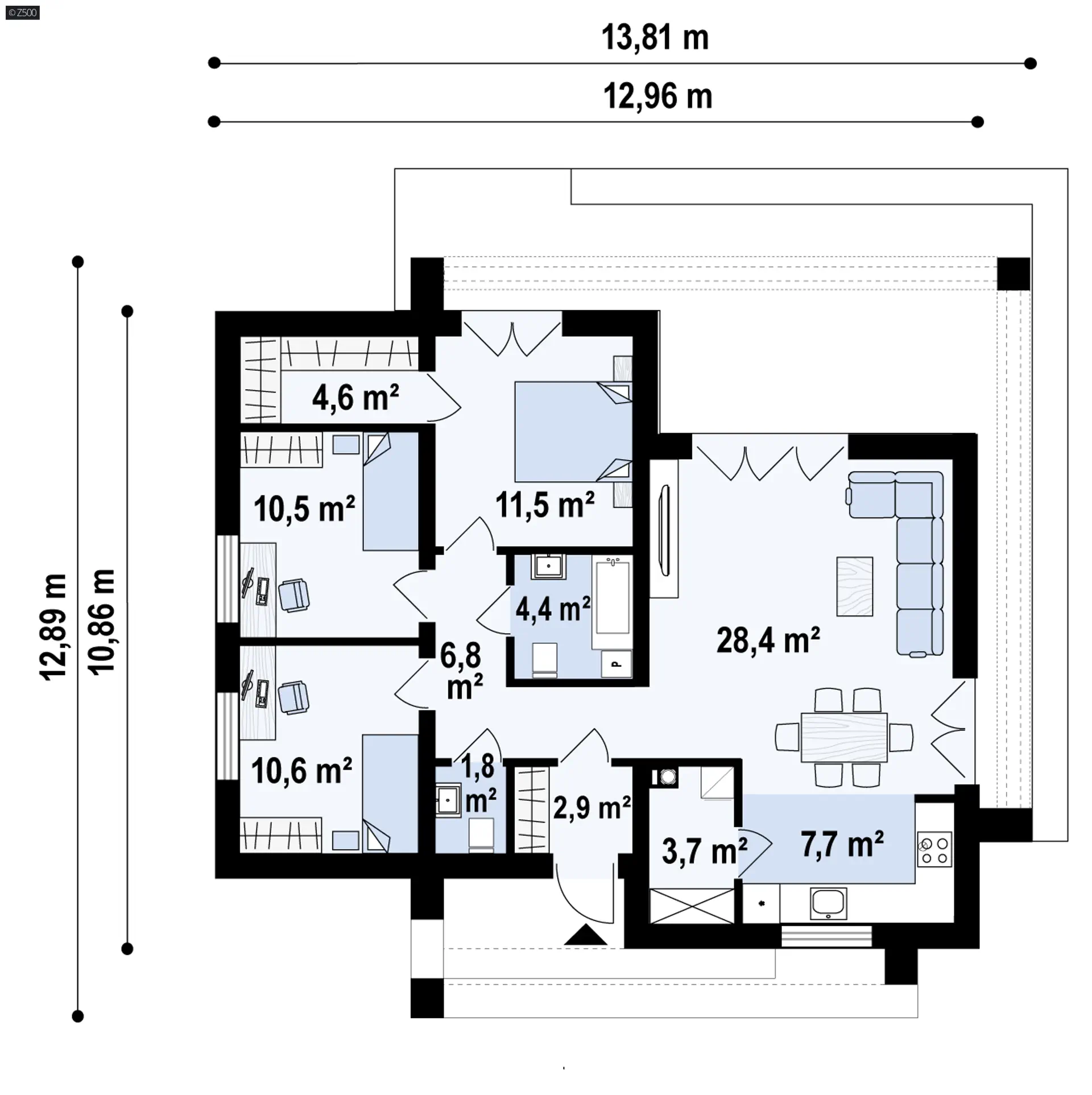 Zx77 A jest projektem dla małżeństwa, którego dzieci już opuściły gniazdo lub jedno dziecko pozostało jeszcze przy rodzicach. Jest to nieduża, ciekawa propozycja dla ludzi ceniących nowoczesny styl.