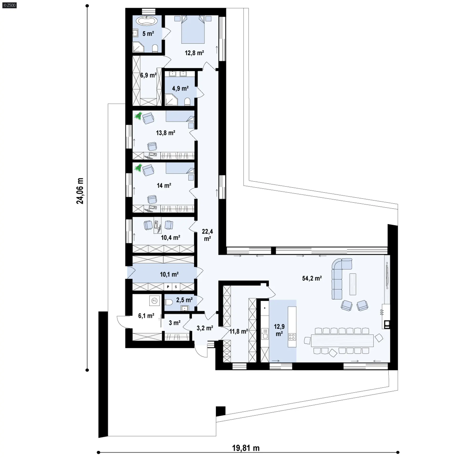 Zx87 + jest projektem dla osób wymagających, szukających czegoś innego niż dom podobny do sąsiedniego. Prosty, elegancki, surowy, dla ludzi ceniących nowoczesny styl.