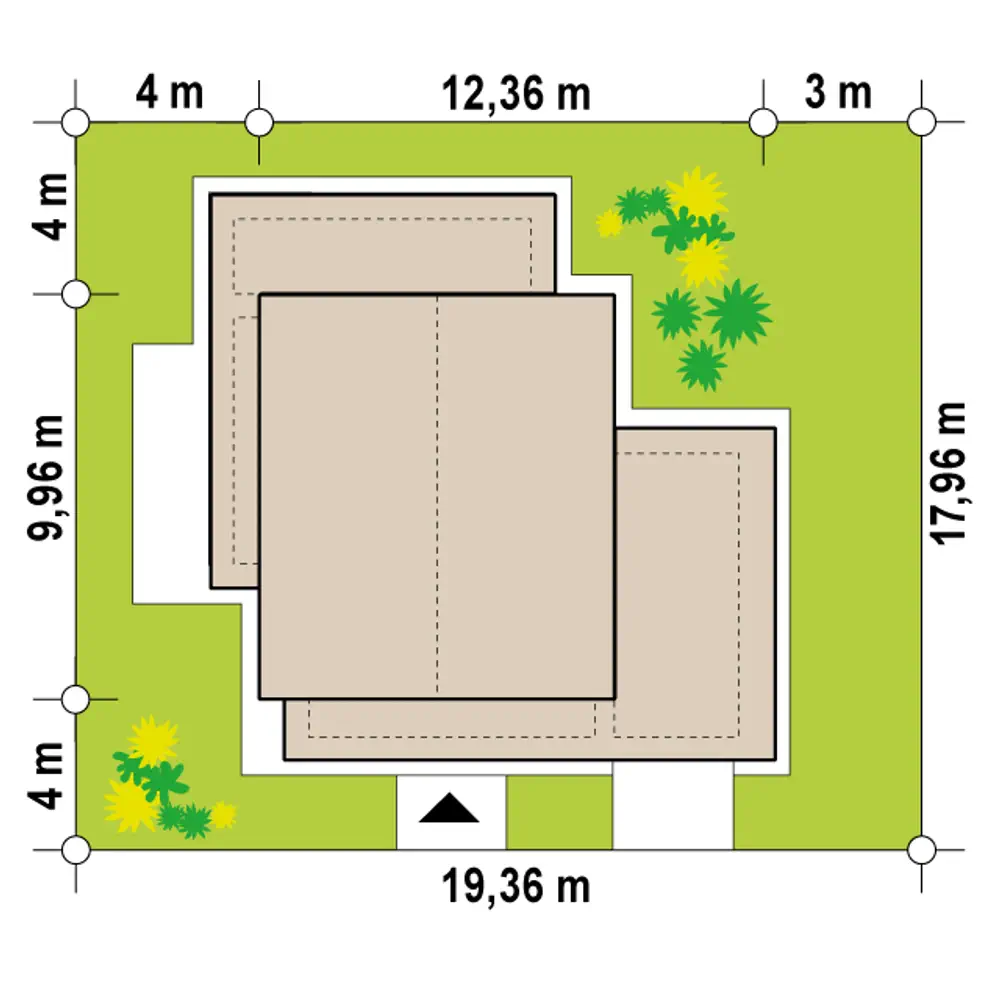 Wariant projektu Zx92 z garażem jednostanowiskowym po prawej stronie.