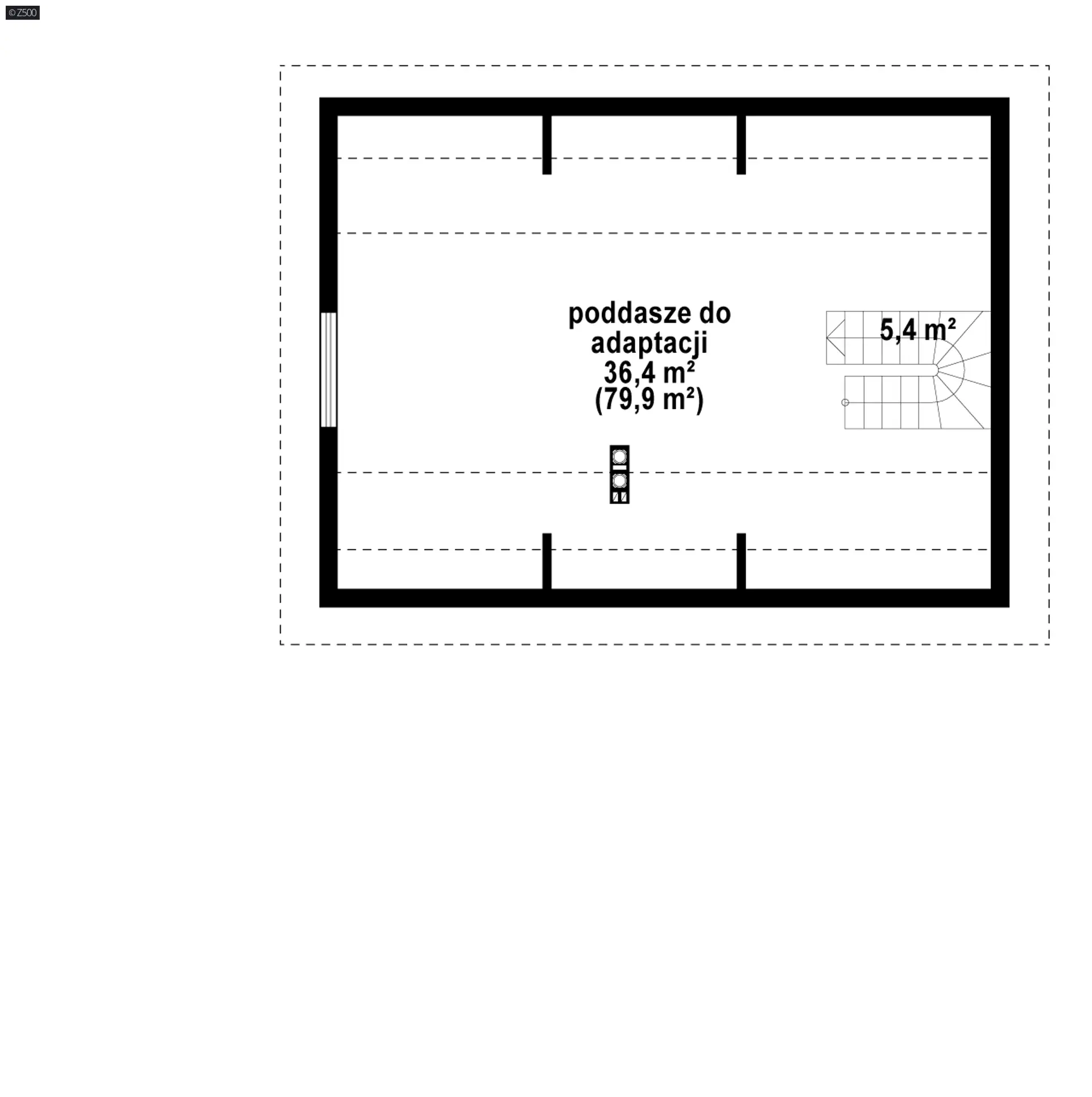 Z255 D a to wersja projektu z255 ze zmienionym układem funkcjonalnym. W tym wariancie kuchnia wraz z kotłownią znajdują się od frontu budynku. Do pomieszczenia gospodarczego mamy bezpośredni dostęp z sieni. Jeden, centralnie ulokowany komin to oszczędne rozwiązanie. Strefa nocna to dwie podobnej wielkości sypialnie. Jedna z nich posiada własną garderobę oraz wyjście na zadaszony taras i do ogrodu. Zaletą projektu jest możliwość adaptacji poddasza, co pozwoli zyskać dodatkowe 37mkw powierzchni użytkowej.