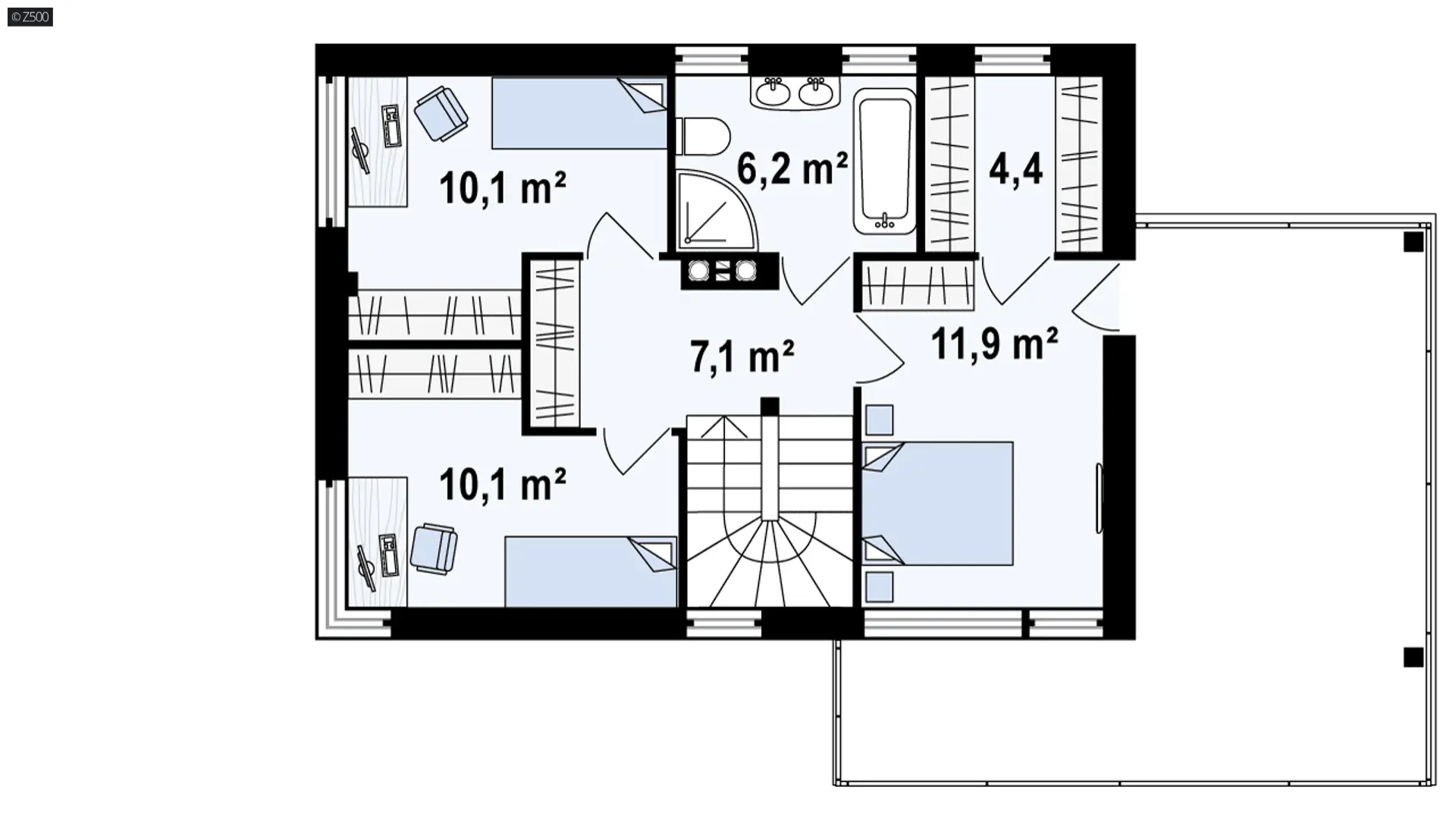Projekt domu Zx63 B to nowoczesny dom z dachem kopertowym. W układzie przewidziano 1 łazienka, salon 17,8 m², garaż jednostanowiskowy. Minimalna działka: 20,56 m × 17,06 m.